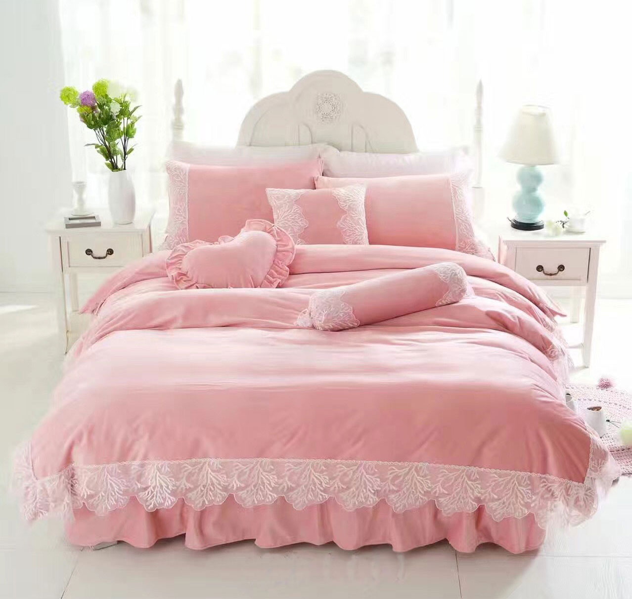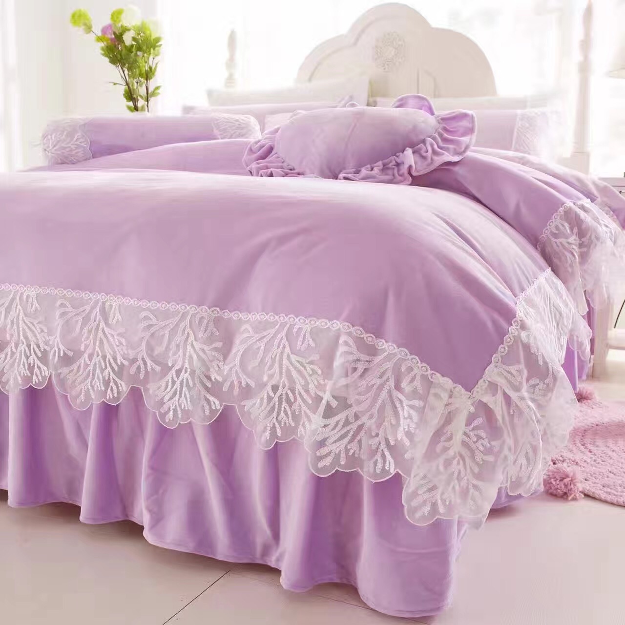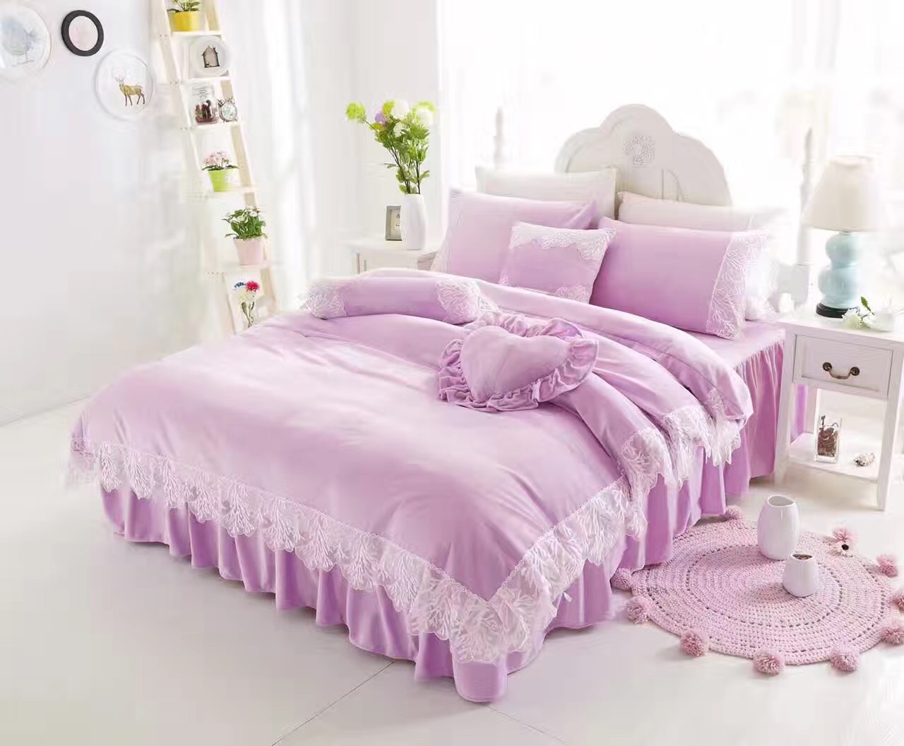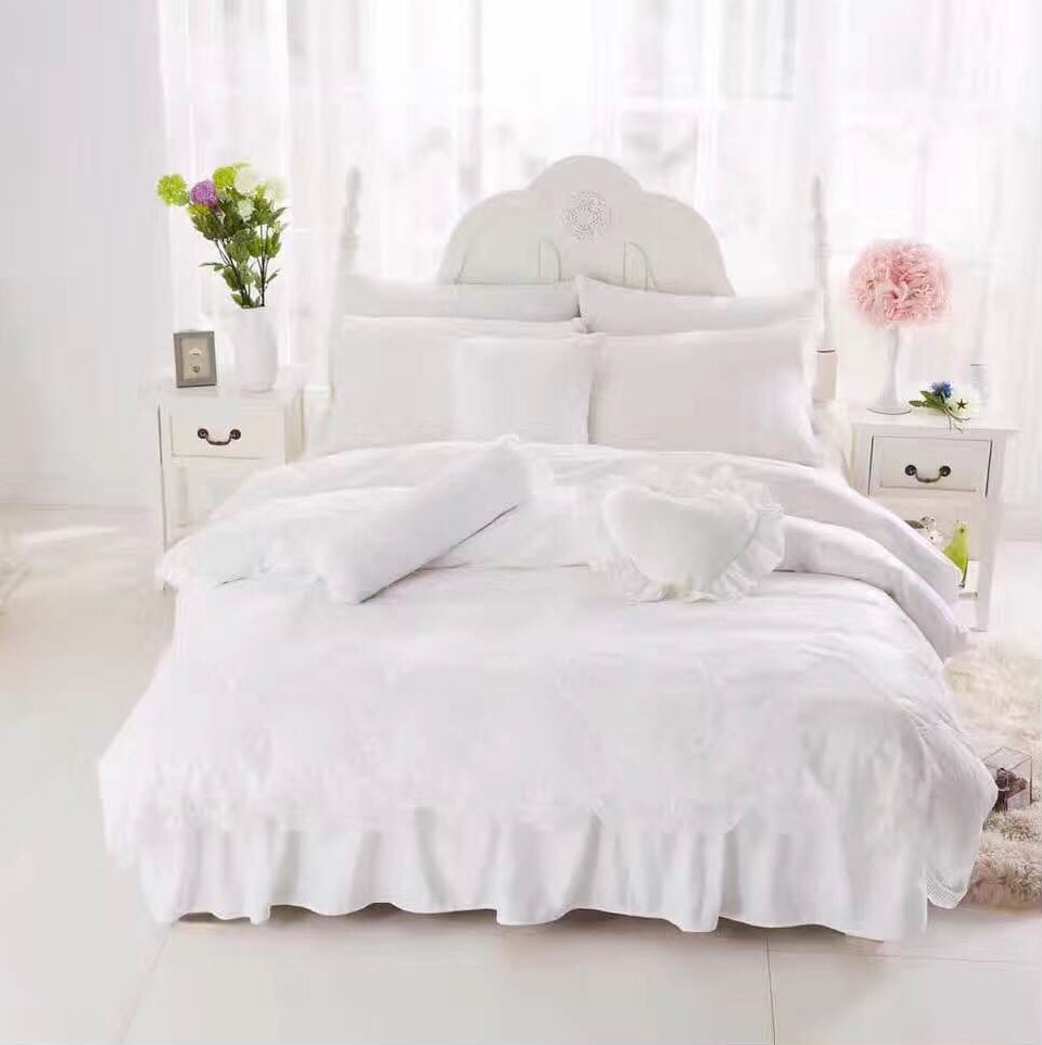輔料:進口蕾絲 規格:1.5床 被套200*230 ,床裙150*200+45《高》,枕套48*74 ............................................. 1.8床 被套200*230,床裙180*200+45《高》,枕套48*74 ............................................. 1.8被加大 被套220*240,床裙180*200+45《高》,枕套48*74 .......................................... 2.0床 被套220*240,床裙200*220+45《高》,枕套48*74