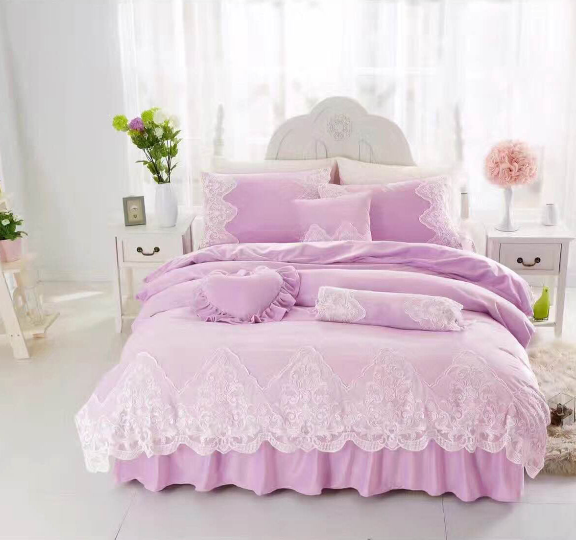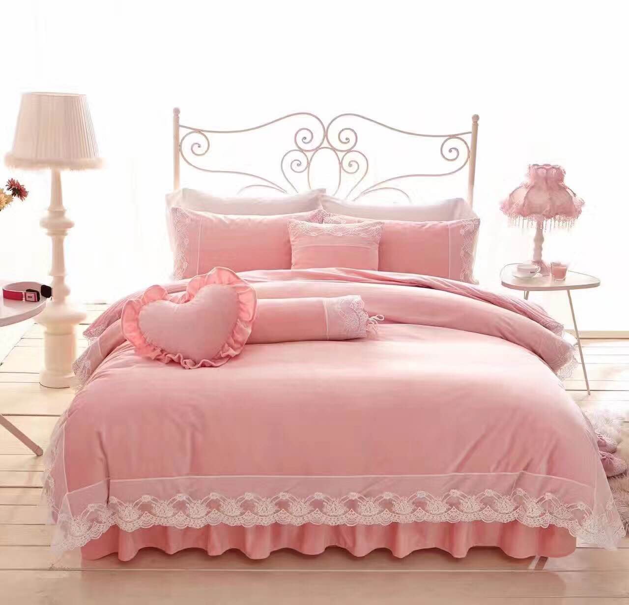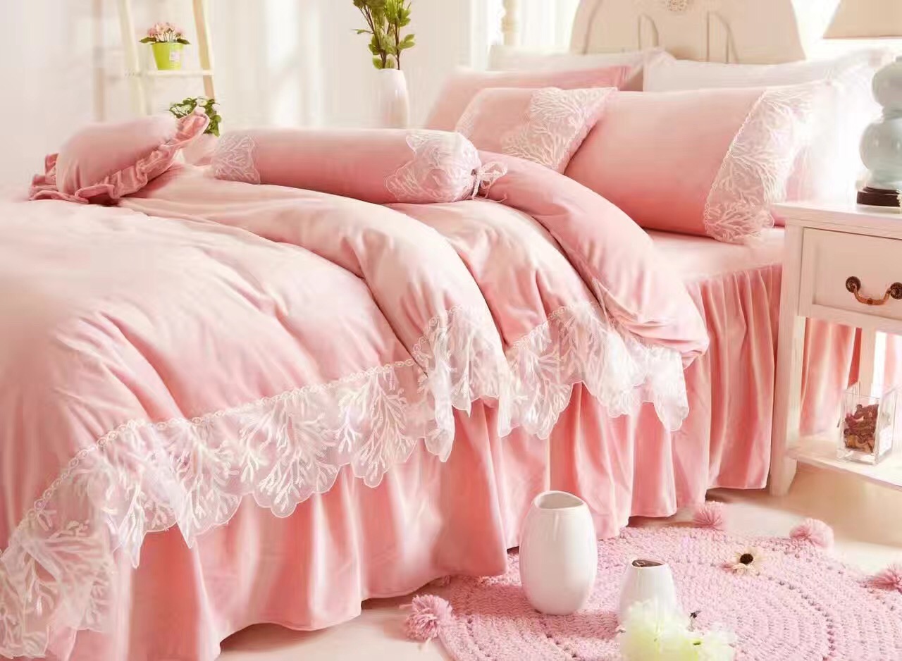 輔料:進口蕾絲 規格:1.5床 被套200*230 ,床裙150*200+45《高》,枕套48*74 ............................................. 1.8床 被套200*230,床裙180*200+45《高》,枕套48*74 ............................................. 1.8被加大 被套220*240,床裙180*200+45《高》,枕套48*74 .......................................... 2.0床 被套220*240,床裙200*220+45《高》,枕套48*74