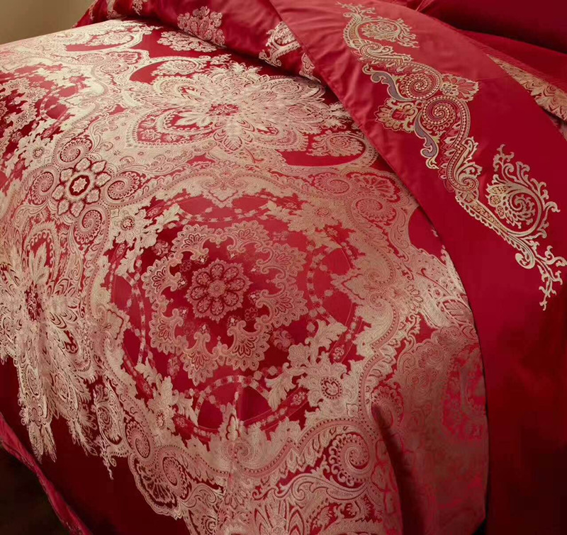 品名:天賜良緣 此款面料是織錦緞中的臻萃典范,經向緯向的色線絢麗,色彩斑斕,色澤光亮,手感和視覺的沖擊力度很大,浪漫的歐式卷草紋和唯美的佩茲利圖案搖曳生姿,美輪美奐,舞蹈出瑰麗的華爾茲!此款床品猶如重金打造的鉆石一般,高端、奢華、華麗!適合婚慶、居家、喬遷、饋贈的至高選擇!