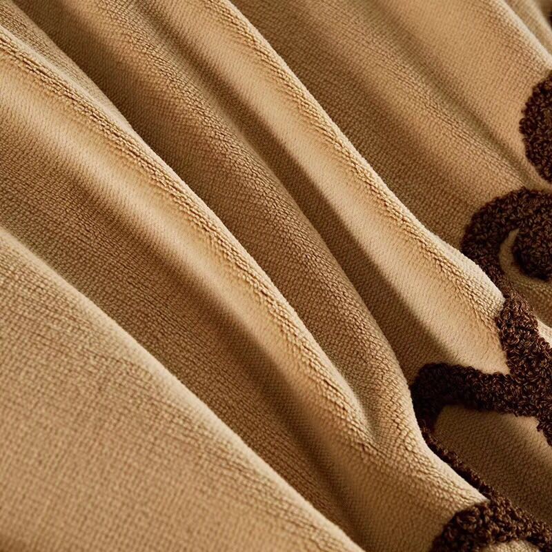 【工藝】高標準縫制   不同顏色的面料拼接    特種毛巾繡   床單均采用圓弧打裥貼邊    繡花內襯全部采用精致歐根紗   隱形拉鏈做工  每一個細節都是在追求完美。可改床笠款